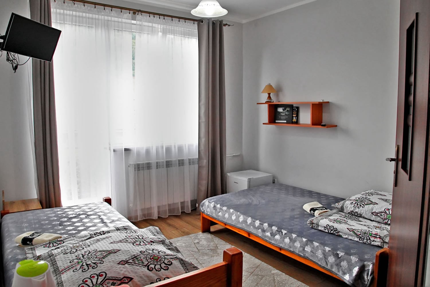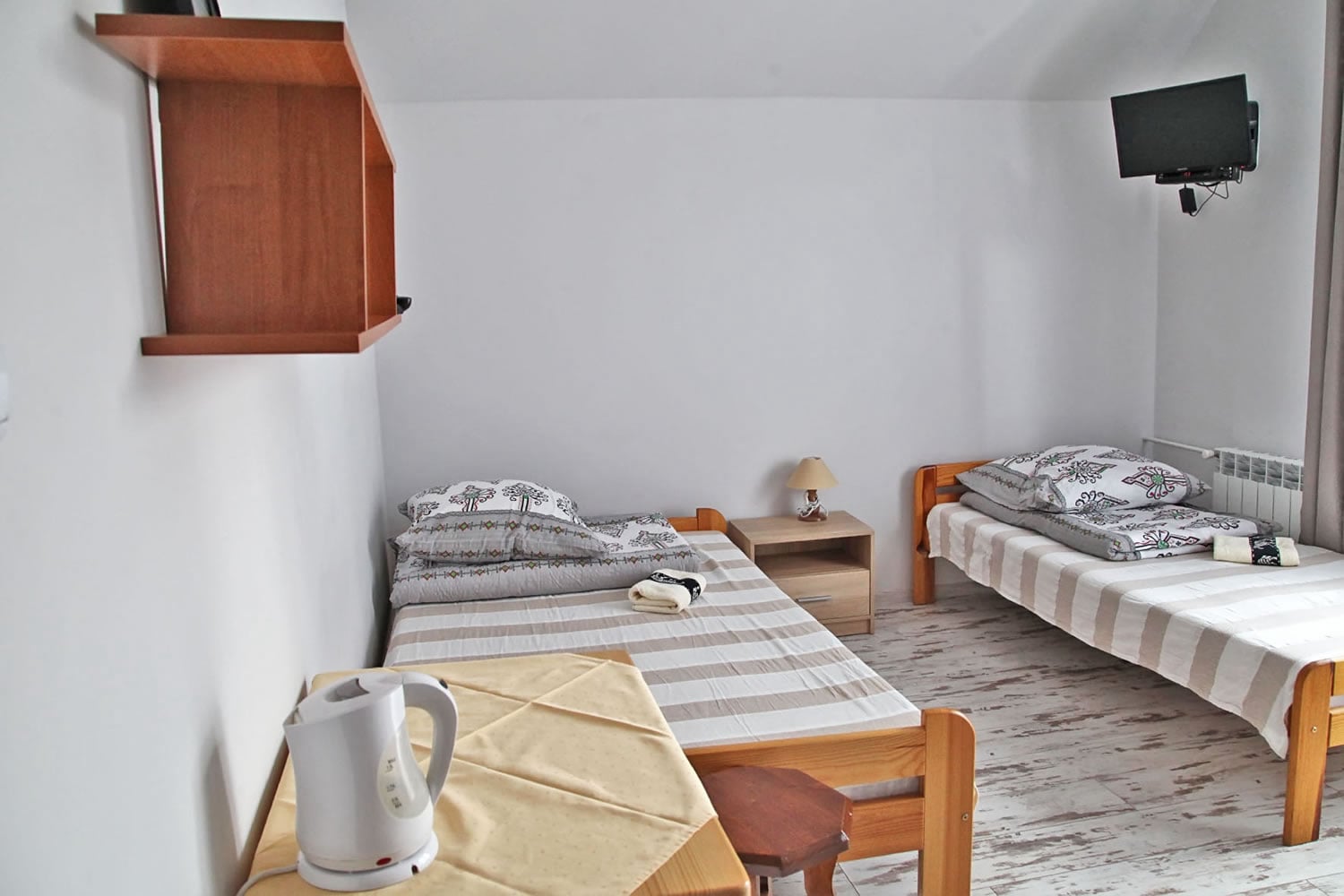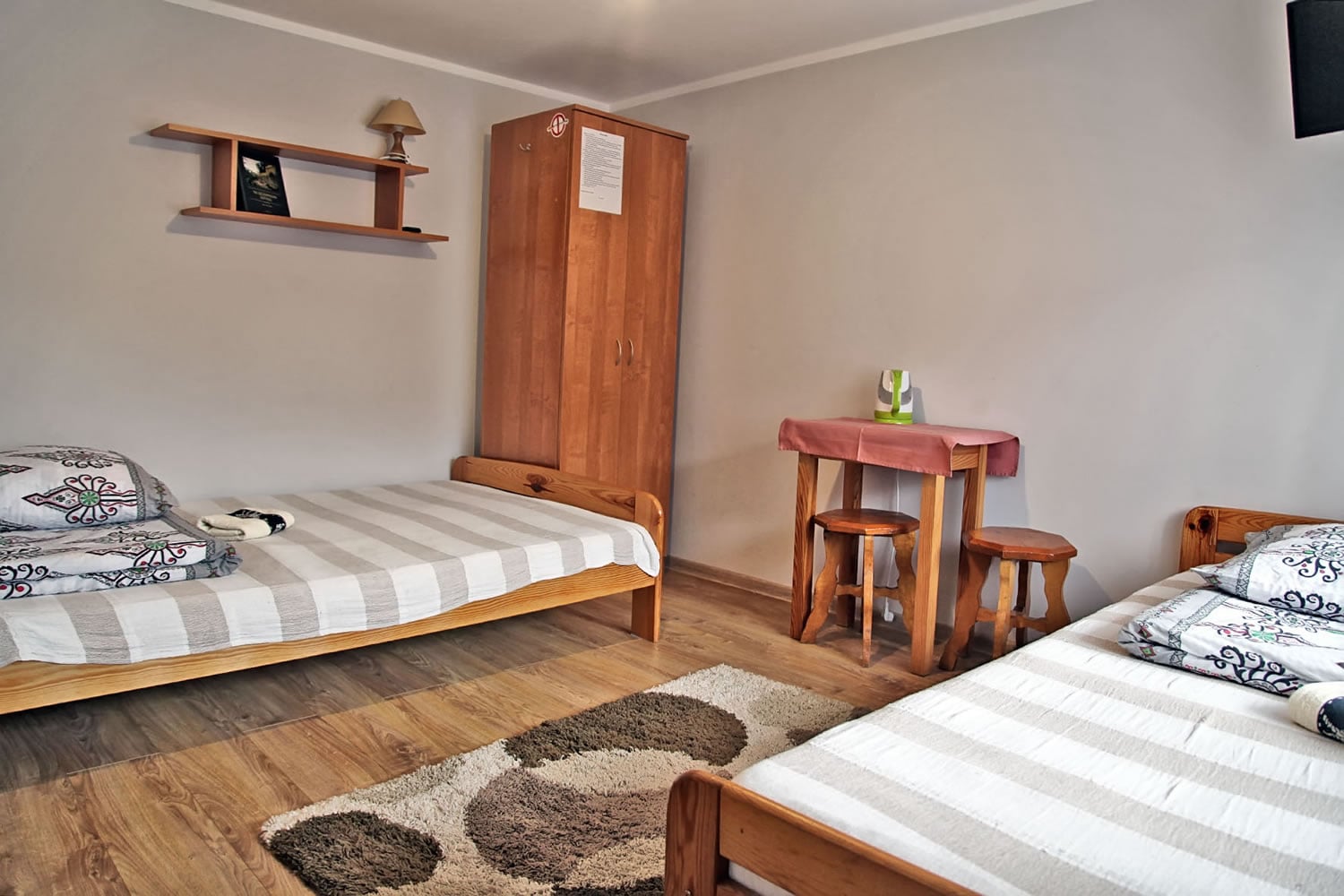 Oferujemy Państwu pokoje gościnne 2, 3 i 4 osobowe. Pokoje wyposażone są w łazienki, balkony, czajniki bezprzewodowe, WI-FI. Do dyspozycji wczasowiczów oddajemy kuchnię w pełni wyposażoną. Posiadamy ogród, grill oraz plac zabaw dla dzieci. Posiadamy parking bezpłatny, niestrzeżony. W obiekt znajduje się z dala od ulicy, w cichej okolicy.