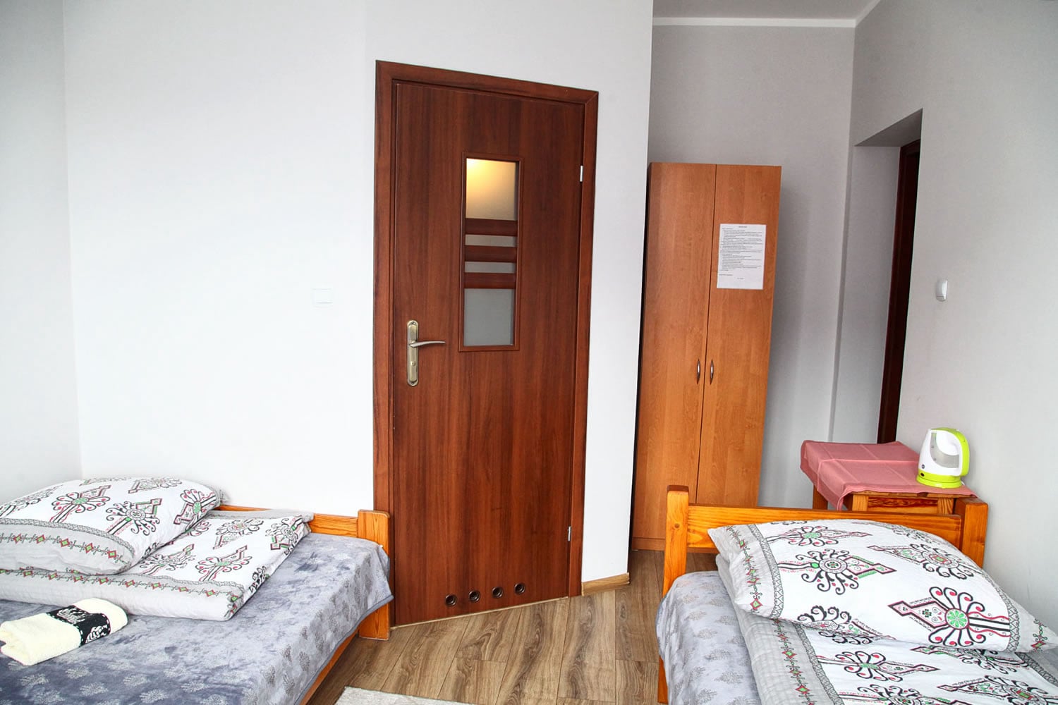 Oferujemy Państwu pokoje gościnne 2, 3 i 4 osobowe. Pokoje wyposażone są w łazienki, balkony, czajniki bezprzewodowe, WI-FI. Do dyspozycji wczasowiczów oddajemy kuchnię w pełni wyposażoną. Posiadamy ogród, grill oraz plac zabaw dla dzieci. Posiadamy parking bezpłatny, niestrzeżony. W obiekt znajduje się z dala od ulicy, w cichej okolicy.